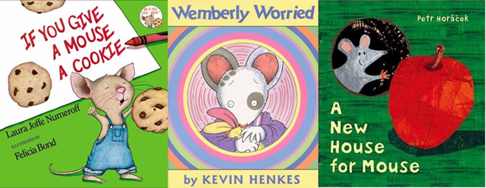 Storytime went fairly well. Each group of preschoolers enjoyed If You Give a Mouse a Cookie. When I finished the story, I asked the first group of children, “Would you give a mouse a cookie?” I was delighted when they replied by shouting, “Nooo!” The munchkins were somewhat restless during the reading of Wemberly Worried (especially the second class), so I decided to forgo reading A New House for Mouse. To help alleviate some of their excess energy, I opted to do a few rounds of Head and Shoulders and Dance Your Fingers. The planned extension activities were big hits–my audiences demanded encore presentations of Hickory Dickory Dock and Mouse Paint. I loved hearing their “oohs” and “ahhs” as white mice took dips into cans of paint, and reappeared colored in primary and secondary hues. Storytime magic!