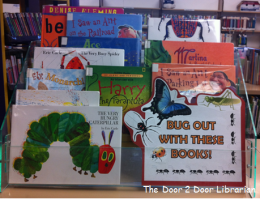 I’ve been working on weeding and sprucing up my juvenile collection. As part of this effort, I’m designing cohesive signage, and promoting books via book displays. Every two weeks I create a new sign (using PPT and clip art) and swap out the books in a tiered acrylic display. The last theme was “Bug out…