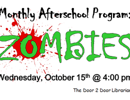 Again, another graphic I created for the library’s Facebook account in order to promote a program. As with all of the graphics, this one was created using Microsoft Power Point. These simple and colorful infographics are generating a lot of added attention, and “views.”